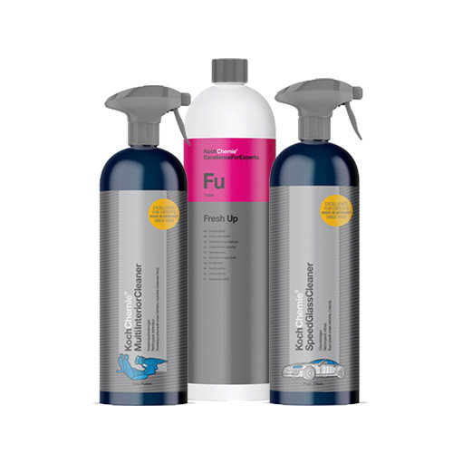 Díky této sadě budete mít behěm chvíle interiér v topu a ve vůni! Čistič interiéru od Kochu Multi Interior si poradí s vetšinou materiálů, které najdete v interiéru (není vhodný na kůži). Perfektní výhled je základ a k tomu Vám pomůže Speedglasscleaner. Nakonec vše provoníte luxusní vůní Fresh Up. Doporučujeme si k sadě přikoupit nějaké příslušenství jako mikrovlákna a štětce.